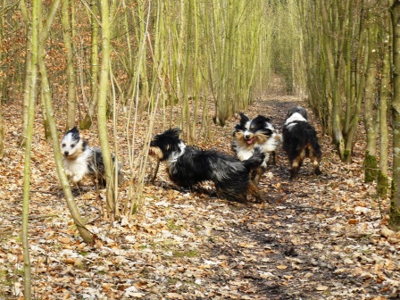 Und diese Vier passen ganz toll zusammen. Es macht Spaß Euch zu beobachten. Amy ist bei Euch eine hübsche und mutige Wällerhündin geworden. Macht weiter so. Wir freuen uns schon auf ein Treffen in Haltern am See. Vielleicht stellt Ihr sie ja dort aus. Und vielen Dank für die Wienerle für die Hundeschar.