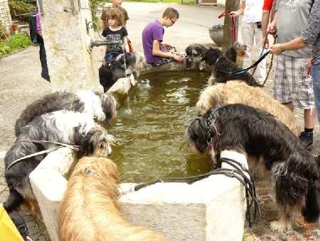 Wenn es einen Wassertrog unterwegs gab haben sich die Hunde daran oder auch darin gelabt.