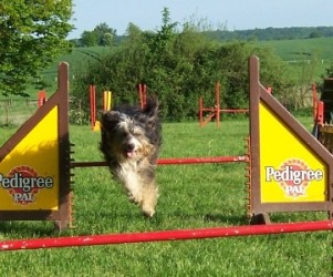 Ich habe im Garten meinen eigenen Agi-Parcours. Das bringt echt Laune, an meinen freien Trainingstagen mit meinem Frauchen zwischen den Stangen hindurchzutoben. So werden wir beide auch immer sicherer. Ich beim Begreifen und Frauchen beim Begreiflichmachen. Sie sagt, sie ist sich dabei oft selbst im Weg. Das wäre schwerer als Stepptanzen. Na ja, hab ich noch nicht ausprobiert.