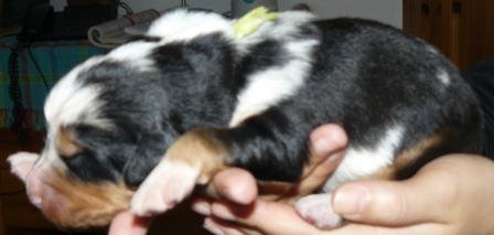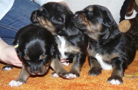 Drei von meinen bunten Welpis. Der kleine Dicke in der Mitte.